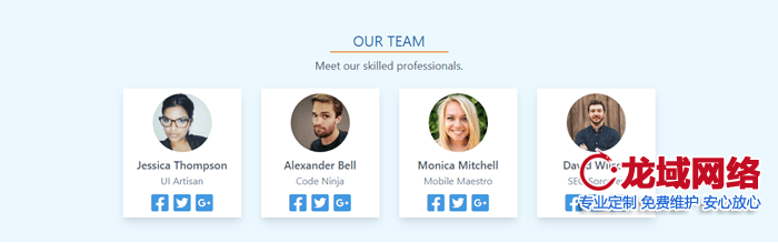 我们创建一个浅蓝色背景的部分。然后,我们添加带下划线的标题和副标题。